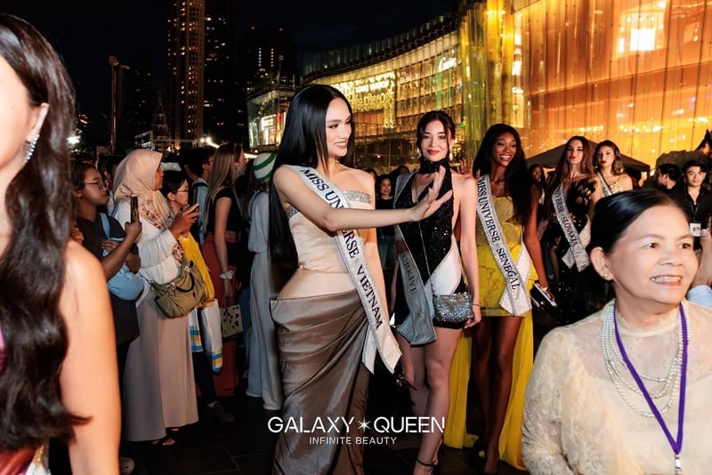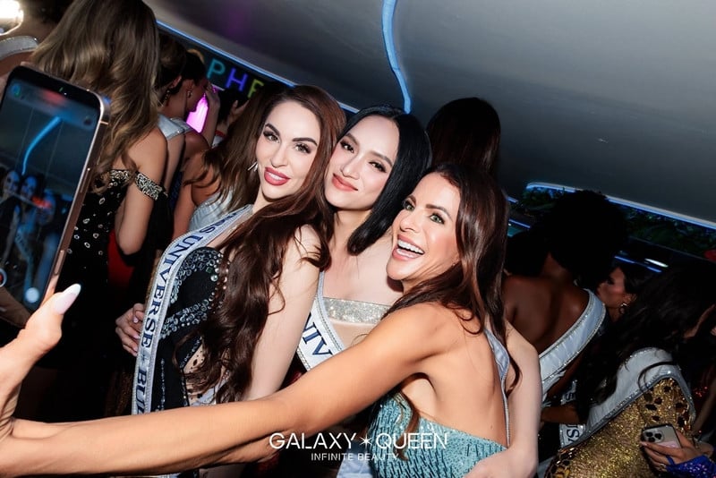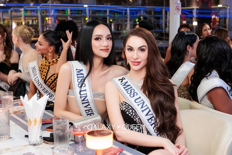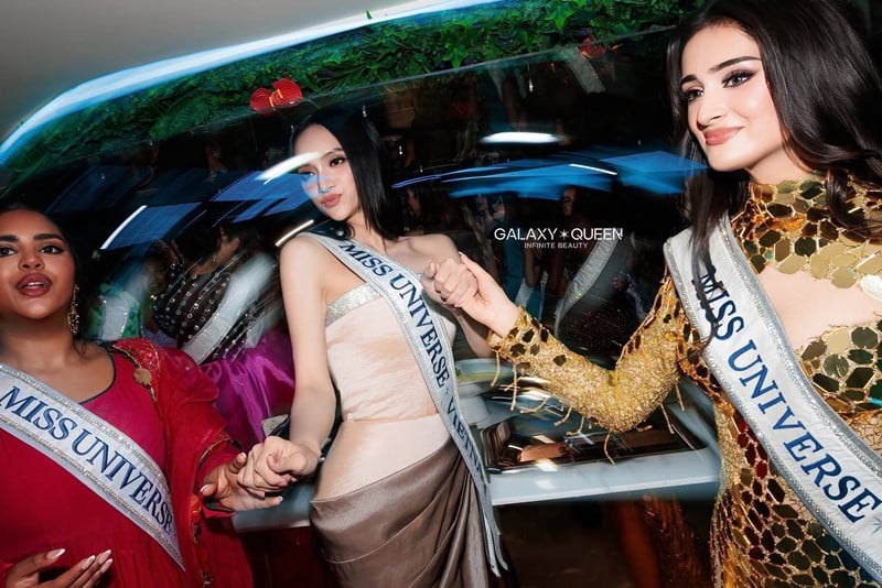 Nach dem Skandal freuten sich die Kandidatinnen der Miss Universe 2025, die abendliche Party in vollen Zügen zu genießen. Die vietnamesische Vertreterin bezauberte in einem eleganten, nudefarbenen Cut-out-Kleid, das ihre schlanke Figur perfekt in Szene setzte. Eine kleine schwarze Handtasche und minimalistische Accessoires ließen Huong Giang unter den anderen Schönheiten erstrahlen.