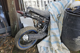 Hier entdeckte die Polizei eine große Anzahl an Motorrädern und Ersatzteilen unbekannter Herkunft, die an vielen verschiedenen Orten versteckt waren.