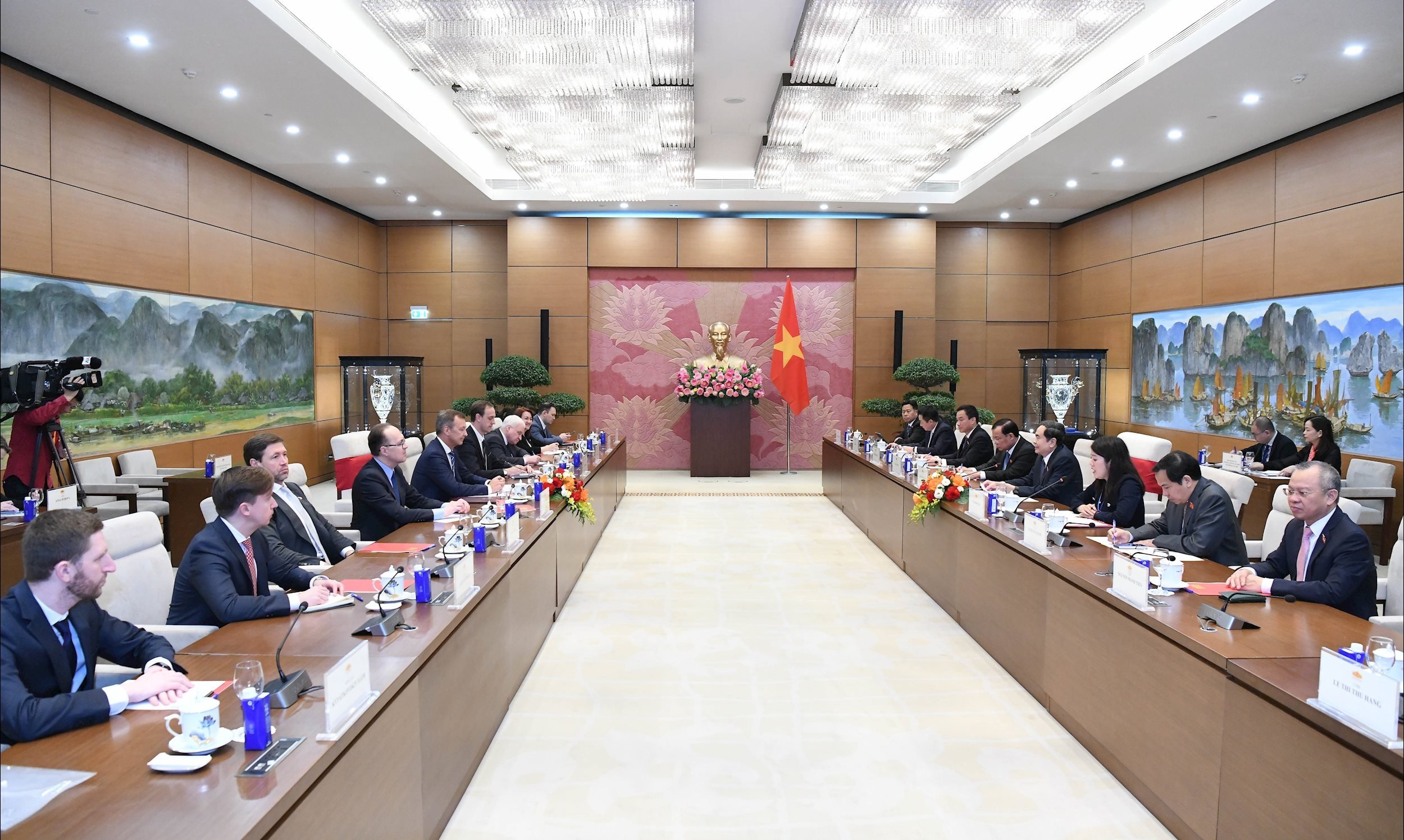 Der Erste Vizepräsident des Föderationsrates, A. V. Jatskin, übermittelte dem Präsidenten der Nationalversammlung, Tran Thanh Man, die Grüße des Präsidenten des Föderationsrates, W. I. Matwijenko; er bekräftigte, dass die hochrangigen Führungskräfte der Russischen Föderation die traditionelle Freundschaft und die umfassende strategische Partnerschaft mit Vietnam sehr schätzen und Vietnam als Russlands wichtigsten Partner in der Region betrachten.