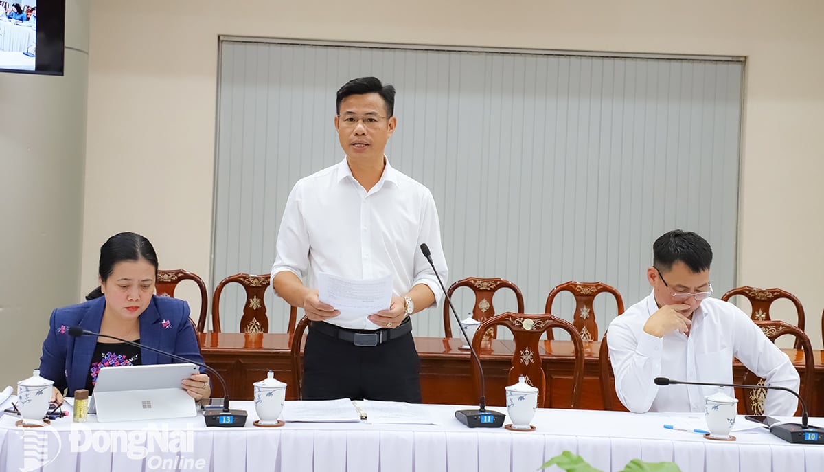| Der stellvertretende Direktor des Kultur-, Sport- und Tourismusdezernats von Dong Nai, Vu Thanh Ngu, berichtete auf dem Treffen über den aktuellen Zustand der Kulturdenkmäler. Foto: My Ny |