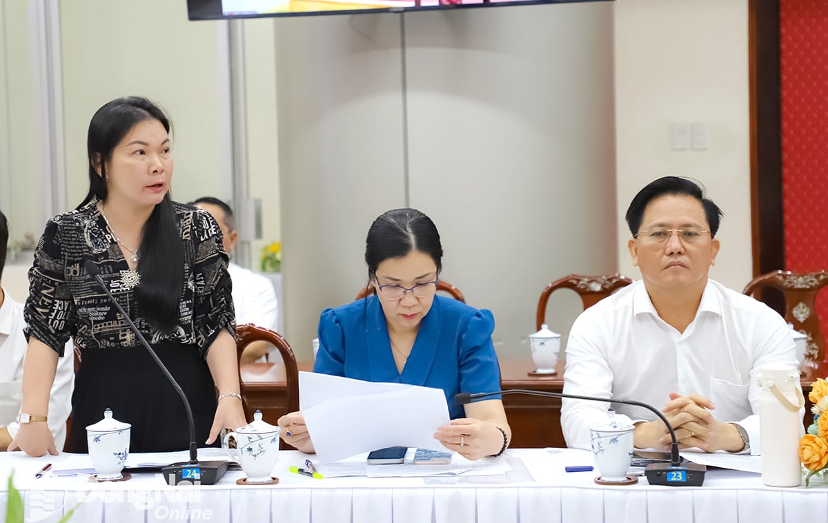 | Le Thi Ngoc Loan, Mitglied des Provinzparteikomitees und Direktorin der Abteilung für Kultur, Sport und Tourismus von Dong Nai, sprach auf der Sitzung. Foto: My Ny |
