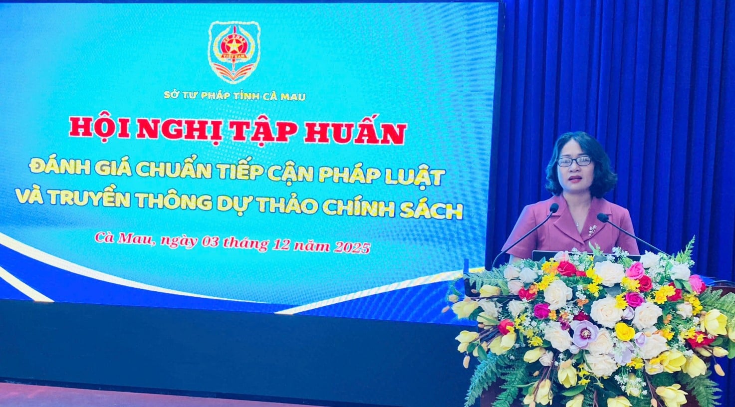 Gemäß dem Umsetzungsplan Nr. 0176/KH-UBND vom 5. November 2025 des Volkskomitees der Provinz Ca Mau zur Organisation der Umsetzung des Beschlusses Nr. 27/2025/QD-TTg vom 4. August 2025 des Premierministers zur Regelung der Gemeinden, die die Standards für den Rechtszugang erfüllen, veranstaltete das Justizministerium am Morgen des 3. Dezember 2025 eine Schulungskonferenz. Ziel der Konferenz war die Anwendung der Vorschriften zur Bewertung der Standards für den Rechtszugang und die Kommunikation von Richtlinienentwürfen. Frau Pham Thi Ngoc, stellvertretende Direktorin des Justizministeriums, leitete die Konferenz und stellte die Schulungsinhalte vor.