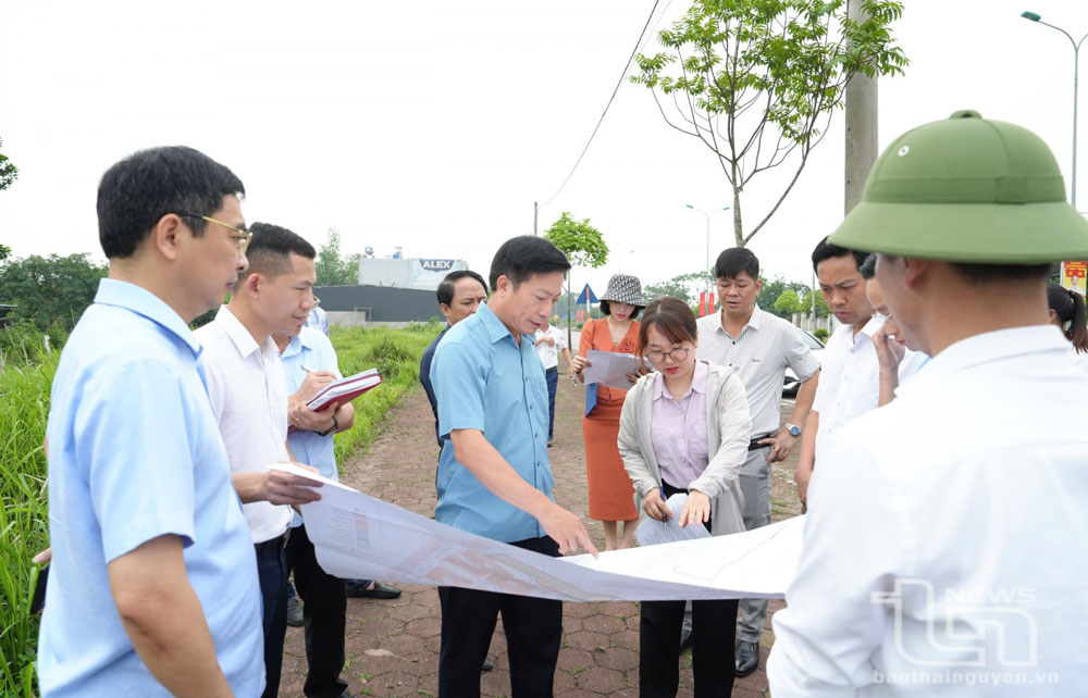 | Die Verantwortlichen der Stadt Song Cong besichtigten den Fortschritt des Projekts „Stadtgebiet Nr. 1“, Le Hong Phong Straße. |