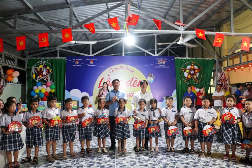 Auf dem Festival sahen die Kinder Löwentänze und genossen zahlreiche besondere Darbietungen. Die Organisatoren überreichten den Schülern der An Ninh Tay Primary School 650 Mittherbstgeschenke im Gesamtwert von 55 Millionen VND, gesponsert von der Agribank Bac Long An-Filiale.