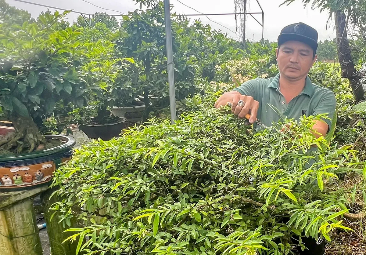 Durch die Kombination seiner Leidenschaft für Kunst, seines Fleißes, seiner Kreativität bei der Arbeit und seines scharfen wirtschaftlichen Denkens inspiriert und verhilft Herr Hung vielen jungen Menschen im Bonsai-Reparaturberuf zu einem stabilen Einkommen. Seit 2020 hat Herr Hung ein siebenköpfiges Bonsai-Reparaturteam gegründet. Das Team ist nicht nur in Can Tho City, sondern auch in den Provinzen An Giang, Vinh Long und Dong Thap tätig, um Bonsais zu reparieren.