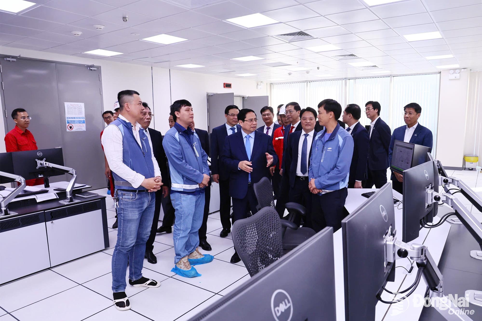 | Premierminister Pham Minh Chinh ermutigt die Arbeiter in der Fabrik. Foto: Cong Nghia |