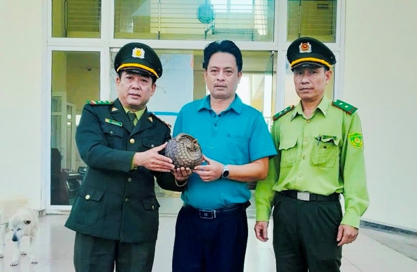 Laut Herrn Nguyen Xuan Su hatte sich dieses Schuppentier auf das Gelände der Verwaltung des Ta-Trach-Sees verirrt. Da er den Schutz von Wildtieren als gesamtgesellschaftliche Aufgabe betrachtet, kontaktierte er proaktiv die Förster, um das Tier zu übergeben.