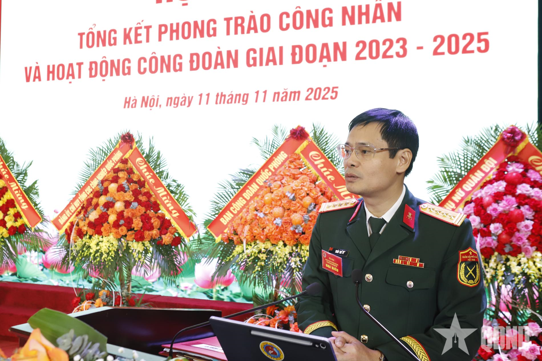 In seiner Rede auf der Konferenz lobte Generalleutnant Dinh Quoc Hung die Errungenschaften und Ergebnisse, die die Gewerkschaftsmitglieder und Angestellten der Generalabteilung in den letzten Jahren erzielt haben, und betonte: Im Zeitraum 2025-2030 müssen die Parteikomitees und Kommandeure auf allen Ebenen die Richtlinien und Beschlüsse der Partei und der Zentralen Militärkommission zur Erneuerung der Organisation und Arbeitsweise der Gewerkschaften in der neuen Ära weiterhin gründlich umsetzen; die Rolle und Stellung der Arbeiterbewegung und der Gewerkschaftstätigkeiten sowie die politische Stärke und die historische Mission der Arbeiterklasse richtig erkennen.