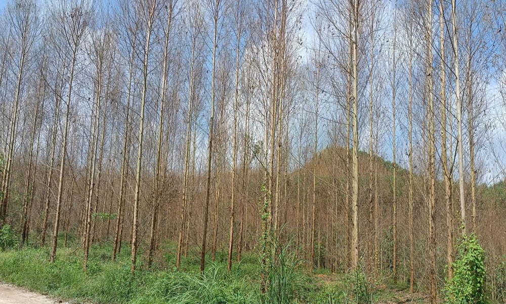 Angepflanzte Wälder im Dorf Ho Tre in der Gemeinde Tam Tien werden durch seltsame Schädlinge beschädigt. |