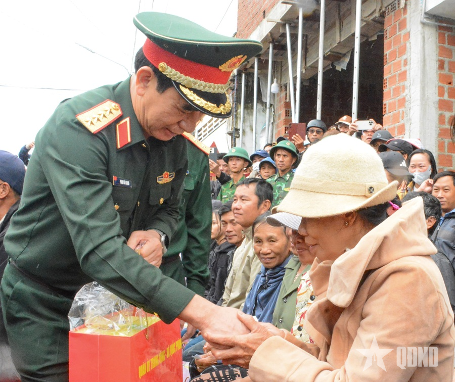 | Đại tướng Phan Văn Giang trao quà tặng người dân. |