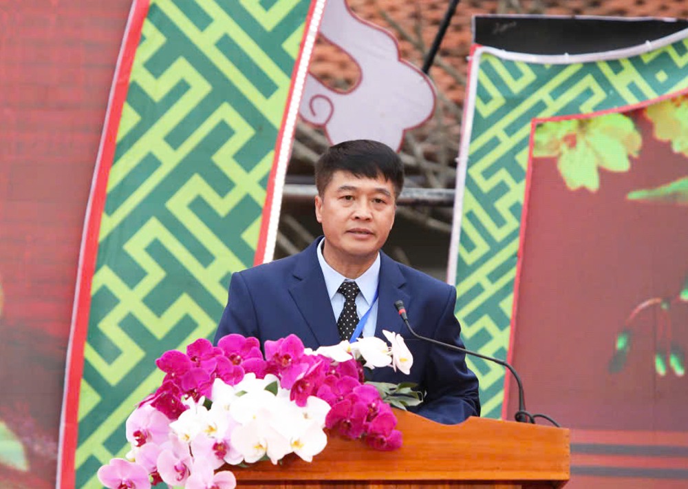 Đồng chí Hoàng Minh Tuấn, Chủ tịch UBND xã Kép khái quát về tích lễ hội mở cửa rừng. |