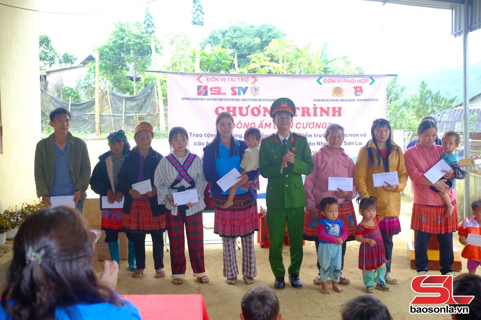 Tại chương trình, Phòng Cảnh sát PCCC&CNCH đã trao 10 phần quà, mỗi phần trị giá 500.000 đồng, dành tặng 10 hộ gia đình có hoàn cảnh đặc biệt khó khăn trên địa bàn xã; Đoàn cơ sở Agribank Chi nhánh Sơn La, Báo và Phát thanh, truyền hình Sơn La đã phối hợp trao tặng 107 phần quà gồm chăn ấm, áo ấm và đồ dùng học tập cho các em học sinh Trường Mầm non Bản Láy, xã Xuân Nha.