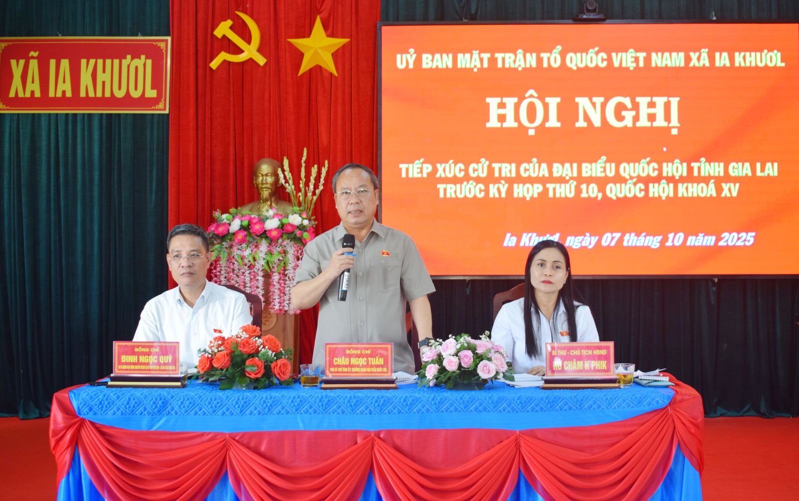 Thay mặt đoàn Đại biểu Quốc hội tỉnh, đồng chí Châu Ngọc Tuấn - Phó Bí thư Tỉnh ủy, Trưởng Đoàn đại biểu Quốc hội tỉnh ghi nhận và tiếp thu toàn bộ ý kiến, kiến nghị của cử tri. Đa số các ý kiến, kiến nghị của cử tri đều thuộc thẩm quyền giải quyết của cấp xã, do vậy, đồng chí yêu cầu UBND xã Ia Khươl tiếp tục nghiên cứu, sớm có hướng giải quyết cụ thể đối với từng nội dung, đúng quy định. Đồng thời, đẩy mạnh tuyên truyền, vận động để thực hiện có hiệu quả giải ngân các nguồn vốn Chương trình mục tiêu Quốc gia; tạo điều kiện, tháo gỡ, khơi thông nguồn vốn vay cho bà con hộ nghèo, hộ cận nghèo để người dân tiếp cận các nguồn vốn vay ưu đãi, hỗ trợ phát triển sản xuất, nâng cao thu nhập, từng bước giảm nghèo bền vững. Địa phương khẩn trương hoàn thành công tác quy hoạch chung, làm cơ sở cho việc phát triển kinh tế - xã hội bền vững.