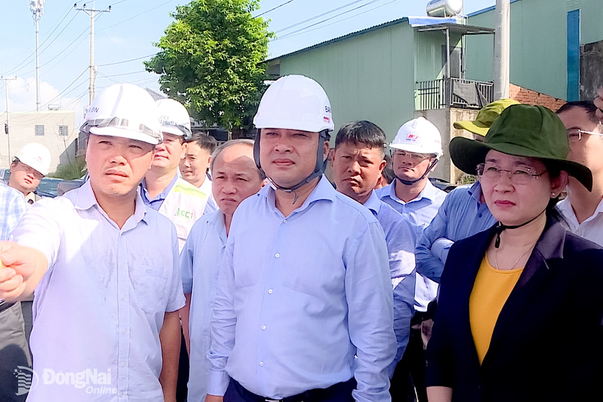 Ủy viên dự khuyết Trung ương Đảng, Phó Bí thư Thường trực Tỉnh ủy, Chủ tịch HĐND tỉnh Đồng Nai Tôn Ngọc Hạnh cùng lãnh đạo tỉnh kiểm tra thực tế các dự án trọng điểm vào sáng 22-10. Ảnh: Duy Tân |