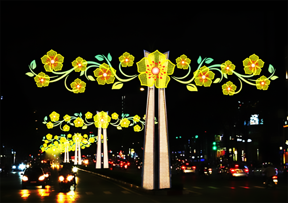 Đoạn 3 (từ giao lộ Hòa Bình - Ngô Văn Sở đến vòng xoay phía trước trụ sở UBND thành phố) gồm các khung đèn được bố trí nổi bật hìn hảnh hoa mai màu vàng.