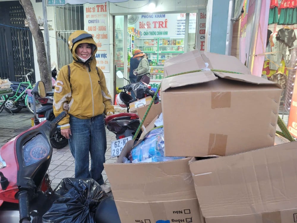 Η κα Thoai Yen και η ομάδα της έχουν δωρίσει περισσότερους από 12 τόνους αγαθών, όπως ρύζι, στιγμιαία noodles, πόσιμο νερό, ρούχα, πάνες, φάρμακα και πολλά άλλα είδη πρώτης ανάγκης, με συνολική εκτιμώμενη αξία άνω των 400 εκατομμυρίων VND. Επιπλέον, 71 εκατομμύρια VND σε μετρητά χωρίστηκαν σε 710 μικρές δωρεές, αξίας 100.000 VND η καθεμία, για να δοθούν στους ανθρώπους στις πληγείσες από τις πλημμύρες περιοχές.