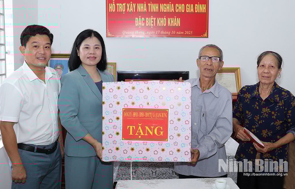 Παρουσιάζοντας τα χρήματα υποστήριξης, ο σύντροφος Pham Thanh Trung, μέλος της Επαρχιακής Επιτροπής του Κόμματος και Αναπληρωτής Επικεφαλής της Επιτροπής Εσωτερικών Υποθέσεων της Επαρχιακής Επιτροπής του Κόμματος, ενθάρρυνε και εξέφρασε τη συμπαράστασή του στην κατάσταση της οικογένειας. Ταυτόχρονα, ζήτησε από την τοπική Επιτροπή του Κόμματος, την κυβέρνηση και τα τμήματα, τα παραρτήματα και τους οργανισμούς της κοινότητας Quang Hung να συνεχίσουν να προωθούν το κίνημα άμιλλας «Για τους φτωχούς - Κανείς δεν μένει πίσω», δημιουργώντας έτσι τις προϋποθέσεις για τις οικογένειες που βρίσκονται σε δύσκολη θέση στην περιοχή και τα νοικοκυριά που αντιμετωπίζουν ιδιαίτερα δύσκολες συνθήκες, ώστε να λάβουν έγκαιρη προσοχή και υποστήριξη, τόσο υλική όσο και πνευματική.