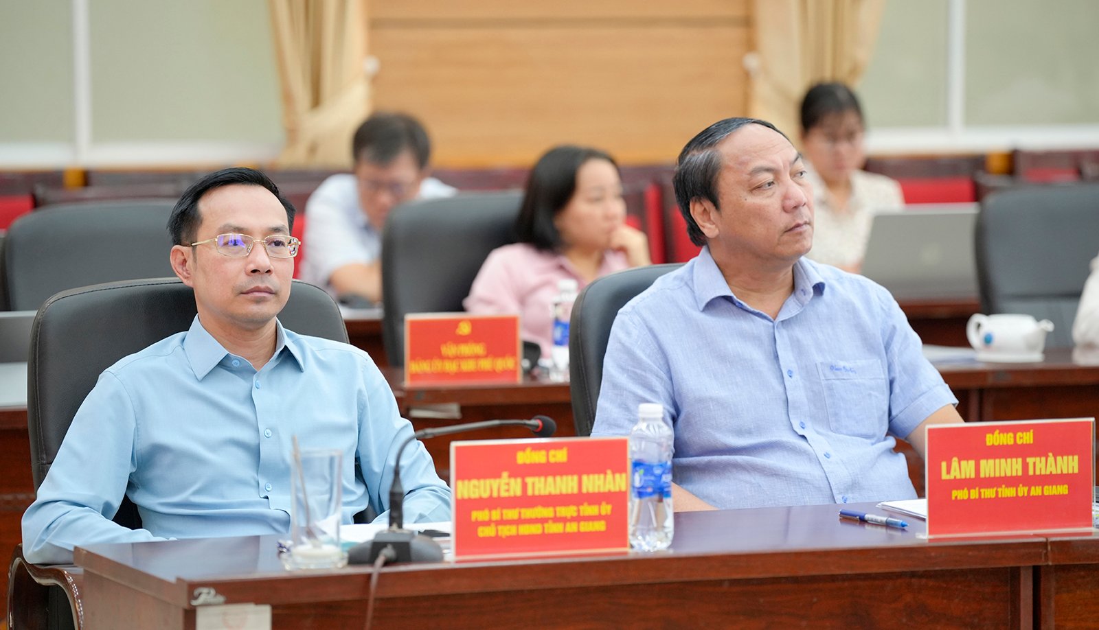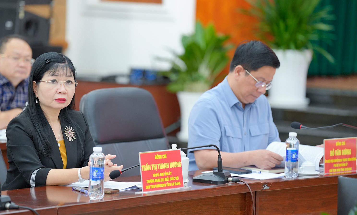 Μέλος της Κεντρικής Επιτροπής του Κόμματος, Γραμματέας της Επαρχιακής Επιτροπής του Κόμματος An Giang, Nguyen Tien Hai και σύντροφοι: Μόνιμος Αναπληρωτής Γραμματέας της Επαρχιακής Επιτροπής του Κόμματος, Πρόεδρος του Λαϊκού Συμβουλίου της Επαρχίας An Giang, Nguyen Thanh Nhan· Αναπληρωματικό μέλος της Κεντρικής Επιτροπής του Κόμματος, Αναπληρωτής Γραμματέας της Επαρχιακής Επιτροπής του Κόμματος, Πρόεδρος της Επαρχιακής Λαϊκής Επιτροπής του An Giang, Ho Van Mung· Αναπληρωτής Γραμματέας της Επαρχιακής Επιτροπής του Κόμματος An Giang, Lam Minh Thanh· Αναπληρωτής Γραμματέας της Επαρχιακής Επιτροπής του Κόμματος, Επικεφαλής της Αντιπροσωπείας της Εθνοσυνέλευσης της επαρχίας An Giang, Πρόεδρος της Επιτροπής Πατριωτικού Μετώπου Βιετνάμ της επαρχίας, Tran Thi Thanh Huong, προήδρευσαν της συνεδρίασης εργασίας.