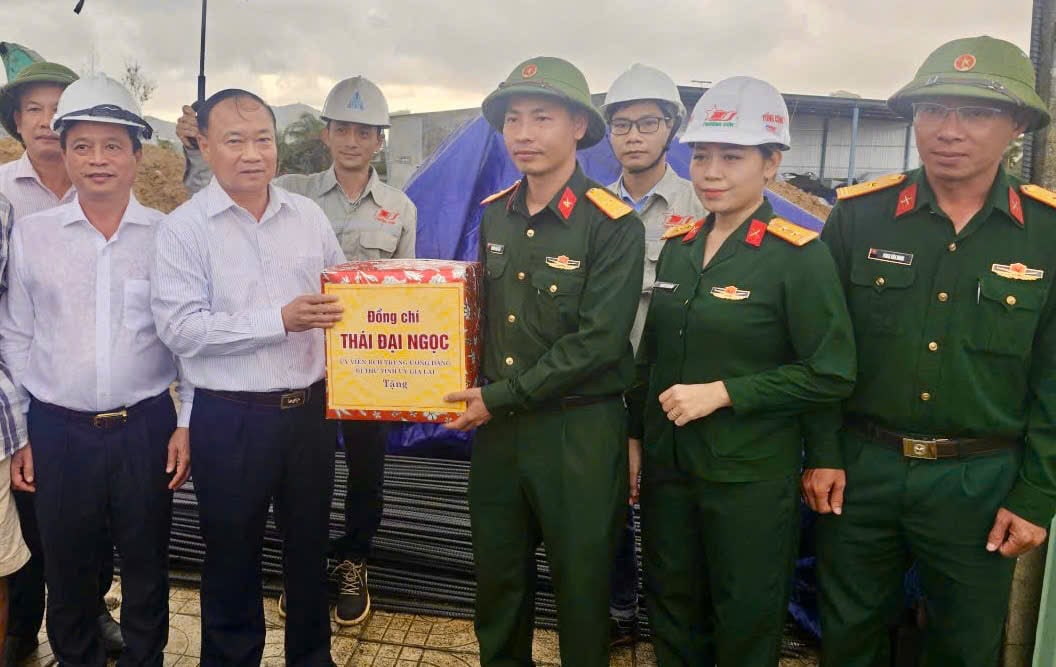 Με την ευκαιρία αυτή, ο Γραμματέας του Επαρχιακού Κόμματος, Thai Dai Ngoc, παρουσίασε δώρα για να ενθαρρύνει τις δυνάμεις που συμμετέχουν στην υποστήριξη της κατασκευής κατοικιών για τους ανθρώπους που επλήγησαν από καταιγίδες και πλημμύρες.