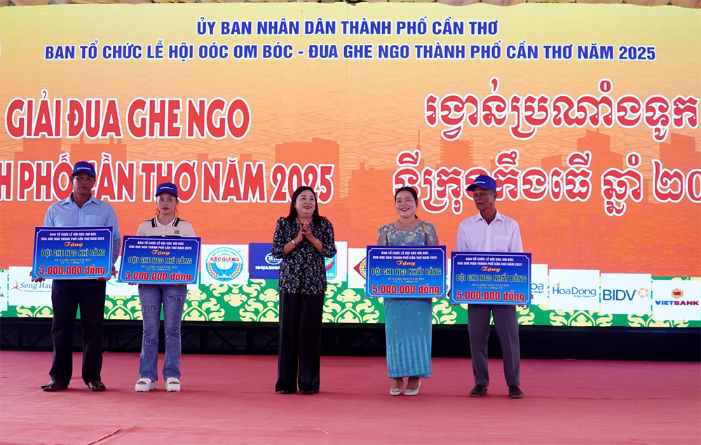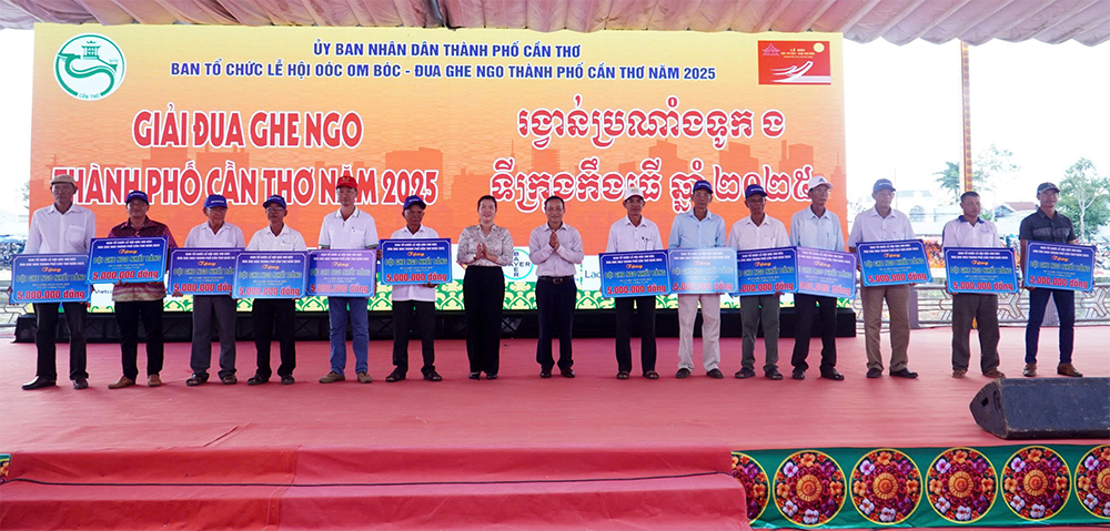 Οι ηγέτες της πόλης Can Tho απένειμαν βραβεία στις ομάδες σκαφών Ngo Nu με υψηλά επιτεύγματα. Φωτογραφία: THACH PICCH
