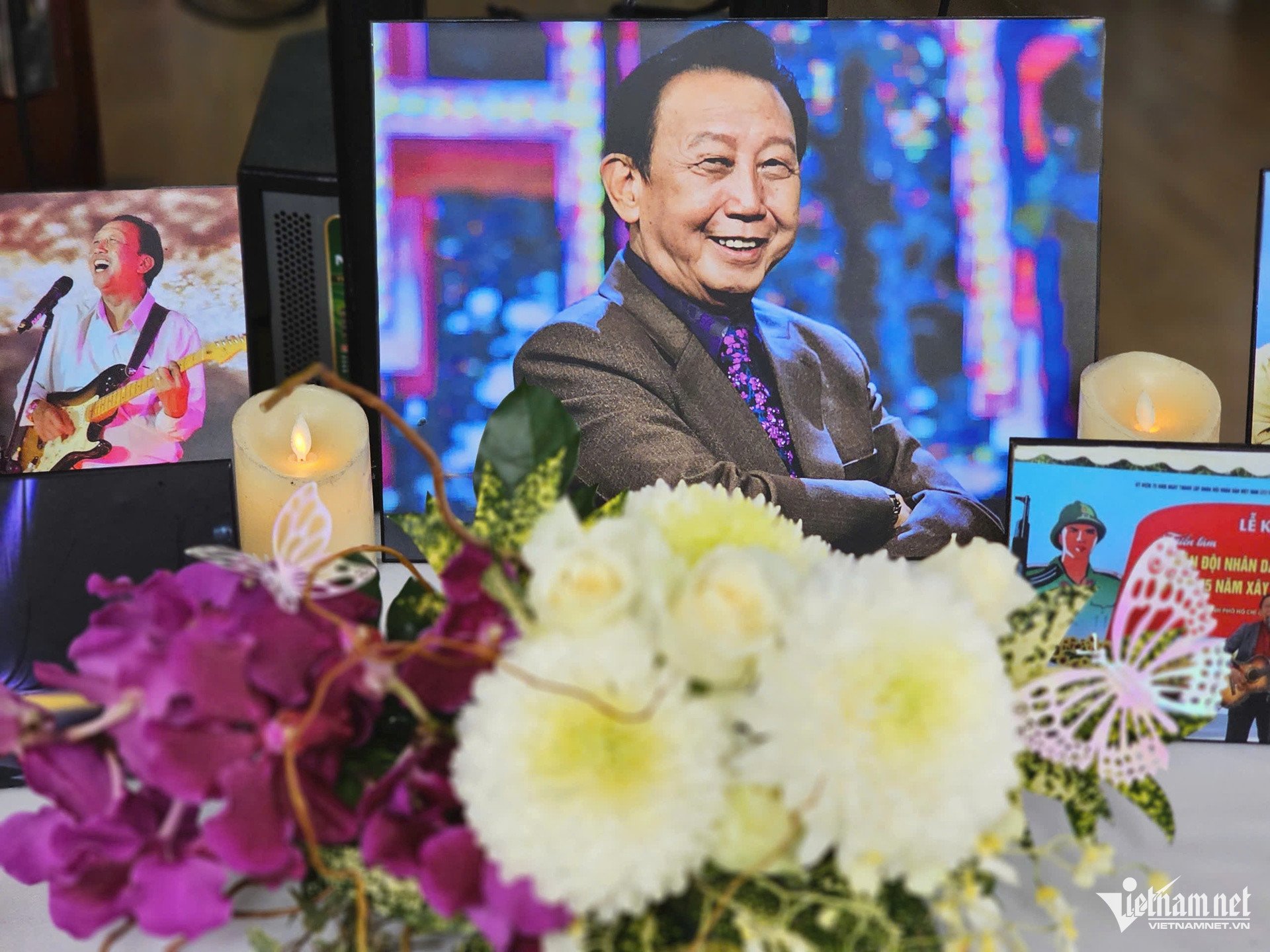 Στις φωτογραφίες, ο Καλλιτέχνης του Λαού Thế Hiển εξακολουθεί να χαμογελά πλατιά, πιστός στην οικεία εικόνα του όταν ήταν ζωντανός. Η οικογένειά του τοποθέτησε επίσης αντικείμενα στη μνήμη του, από μια κιθάρα μέχρι μια συλλογή από 40 τραγούδια που έγιναν επιτυχίες.