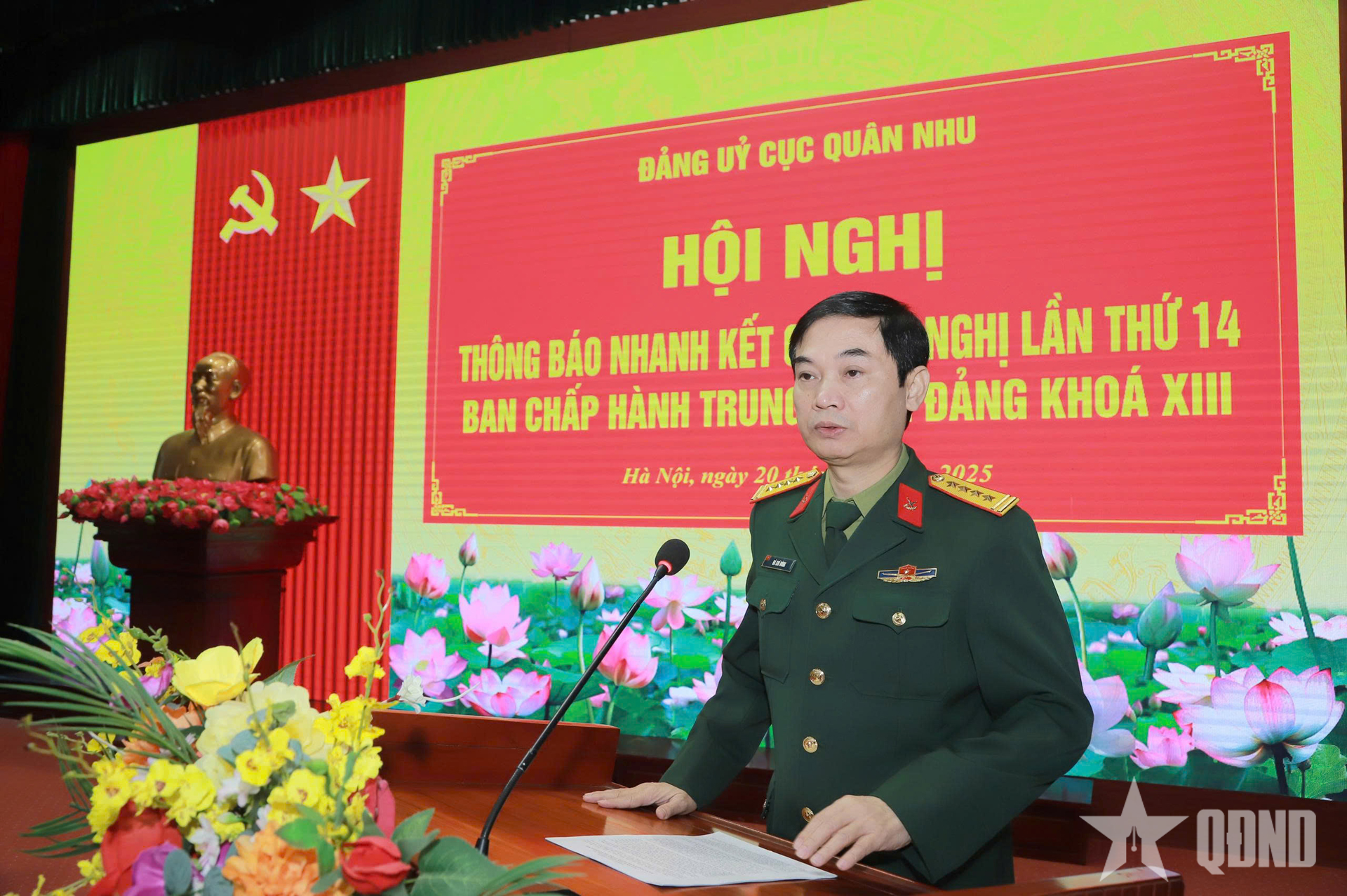 | Ο Συνταγματάρχης Νγκουγιέν Βου Τανγκ, Πολιτικός Διευθυντής του Τμήματος Εφόρμου, ανακοίνωσε άμεσα τα αποτελέσματα της 14ης Κεντρικής Συνδιάσκεψης. |