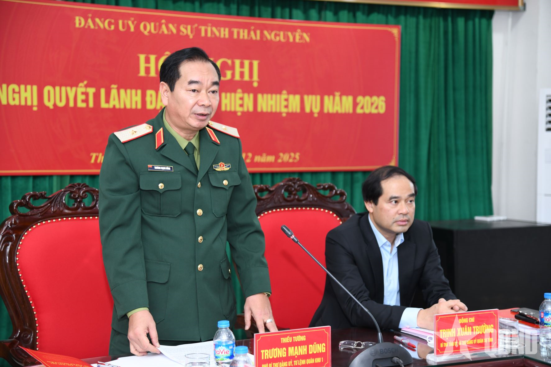 Μιλώντας στο συνέδριο, ο Υποστράτηγος Truong Manh Dung, Αναπληρωτής Γραμματέας της Επιτροπής του Κόμματος και Διοικητής της Στρατιωτικής Περιοχής 1, τόνισε ότι το 2026, η Στρατιωτική Επιτροπή του Κόμματος της Επαρχίας Thai Nguyen θα συνεχίσει να ηγείται ολοκληρωμένα όλων των καθηκόντων των τοπικών ενόπλων δυνάμεων, εστιάζοντας στο έργο της διεξαγωγής ασκήσεων άμυνας στην επαρχιακή περιοχή, να είναι έτοιμη να ανταποκριθεί σε μη παραδοσιακές προκλήσεις ασφαλείας, όπως φυσικές καταστροφές, καταιγίδες, πλημμύρες, κατολισθήσεις, εκρήξεις και δασικές πυρκαγιές, και να διασφαλίσει την απόλυτη ασφάλεια για σημαντικά πολιτικά γεγονότα της επαρχίας και της χώρας.