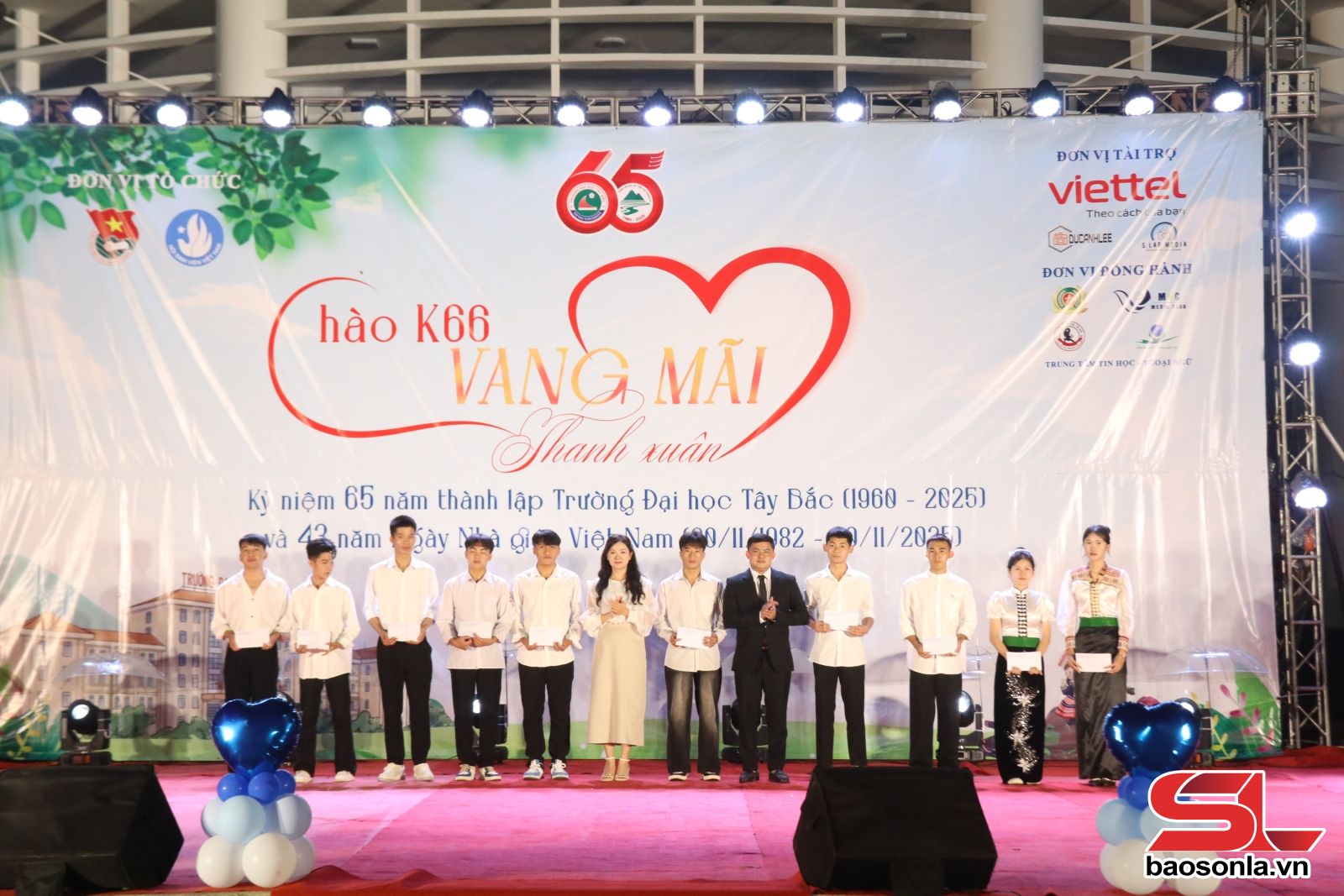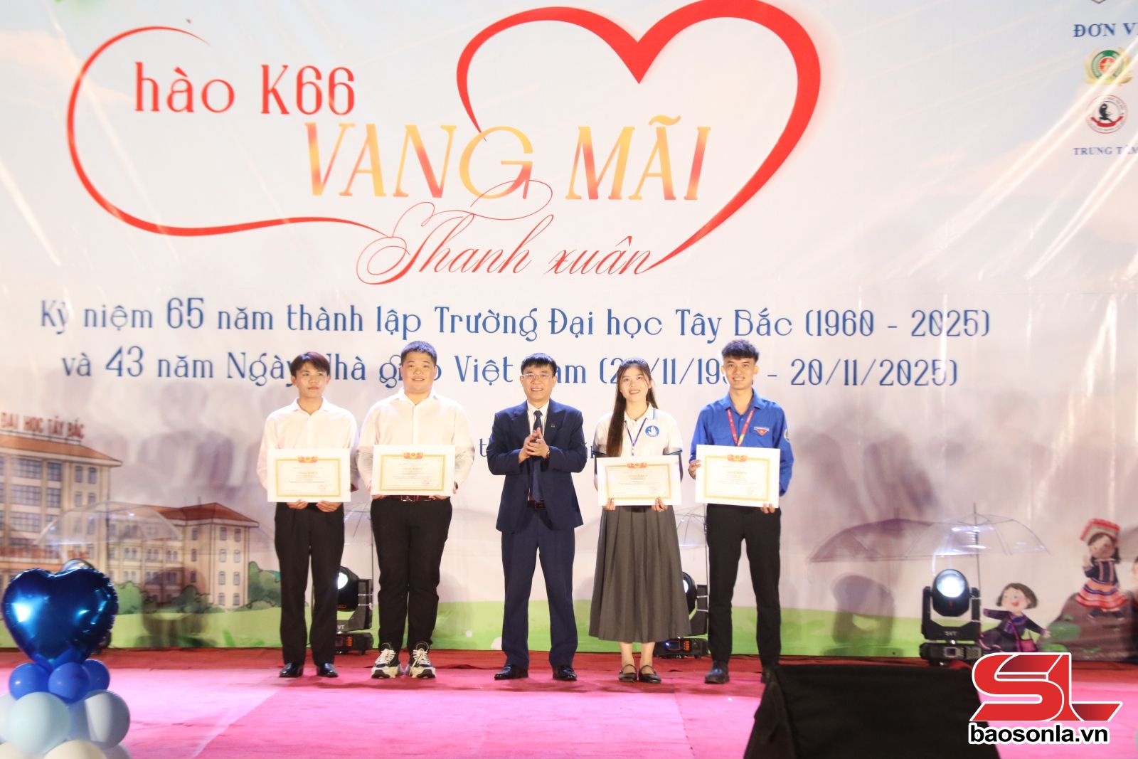 Με την ευκαιρία αυτή, το Πανεπιστήμιο Tay Bac απένειμε πιστοποιητικά επαίνου σε 3 ομάδες φοιτητών με εξαιρετικά επιτεύγματα σε δραστηριότητες νεοσύστατων επιχειρήσεων και καινοτομίας το 2025: 4 άριστους φοιτητές στο κίνημα «Διαγωνισμός για την επίτευξη επιτευγμάτων για τον εορτασμό της 65ης επετείου από την ίδρυση του Πανεπιστημίου» και 50 υποτροφίες σε φοιτητές με δύσκολες συνθήκες και υψηλές ακαδημαϊκές επιδόσεις.