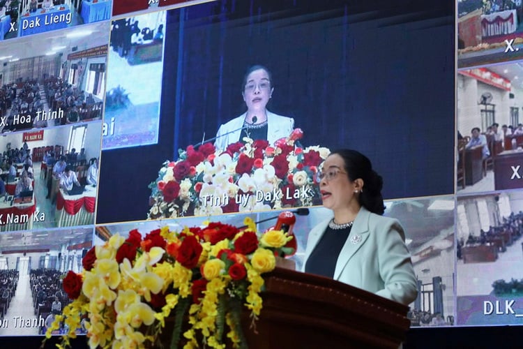 Στις τελικές της παρατηρήσεις, η Μόνιμη Αναπληρώτρια Γραμματέας της Επαρχιακής Επιτροπής του Κόμματος, Πρόεδρος του Επαρχιακού Λαϊκού Συμβουλίου, Κάο Θι Χόα Αν, ζήτησε από τις επιτροπές του Κόμματος, τις αρχές, τις τοπικές αρχές και τις μονάδες να προωθήσουν το πνεύμα της αλληλεγγύης, της καινοτομίας, της τόλμης στη σκέψη, της τόλμης στη δράση, της τόλμης στην ανάληψη ευθύνης για το κοινό συμφέρον· να ηγηθούν, να κατευθύνουν, να λειτουργήσουν και να οργανώσουν την εφαρμογή με αποφασιστικότητα, με εστίαση και βασικά σημεία· να αναθέσουν καθήκοντα ώστε να διασφαλίσουν σαφή πρόσωπα, σαφή εργασία, σαφείς ευθύνες, σαφή χρόνο, σαφή αποτελέσματα, σαφή εξουσία· να ενισχύσουν την επιθεώρηση και την εποπτεία, να διασφαλίσουν την εφαρμογή των ανατεθειμένων καθηκόντων με πνεύμα μετατροπής των φιλοδοξιών σε πράξεις, μετατροπής των ενεργειών σε αποτελέσματα, μετατροπής των αποτελεσμάτων σε νέες πεποιθήσεις, οικοδόμησης της επαρχίας Ντακ Λακ για ταχεία, βιώσιμη, πολιτισμένη ανάπτυξη και με ταυτότητα.