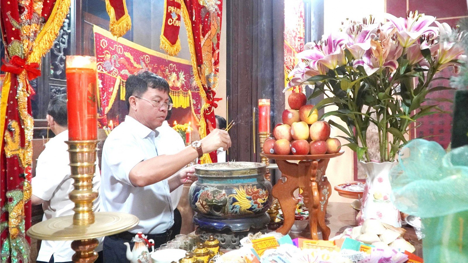 Ο Γραμματέας του Κόμματος της Περιφέρειας Χα Τιέν, Νγκουγιέν Λου Τρανγκ, προσφέρει θυμίαμα στον οικογενειακό ναό των Μακ.