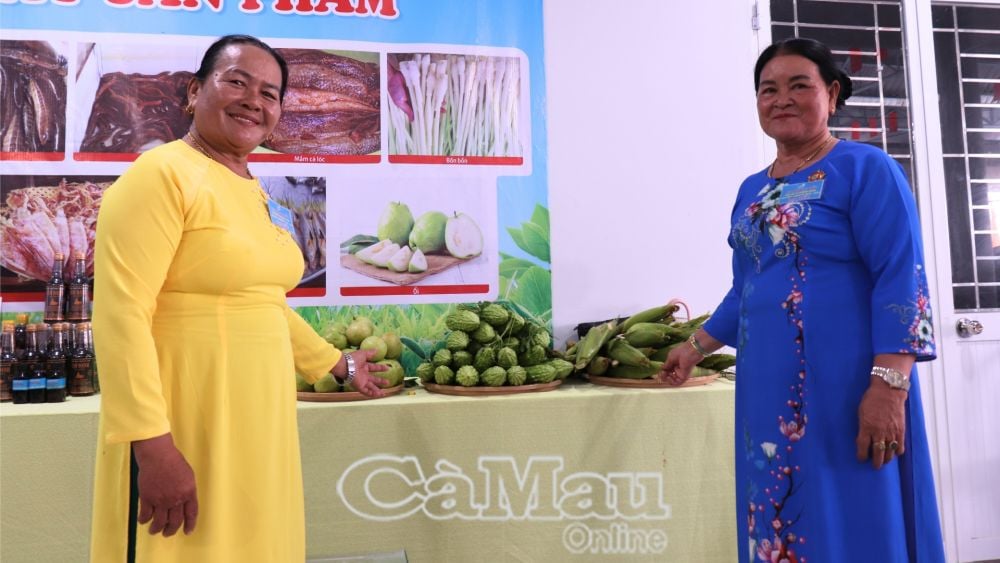 Η κα Quach Thi Kim Luong (κίτρινο πουκάμισο) και τα μέλη συμμετείχαν στην έκθεση προϊόντων στο Συνέδριο Γυναικών της κοινότητας Khanh Hung, για το ακαδημαϊκό έτος 2025-2030.