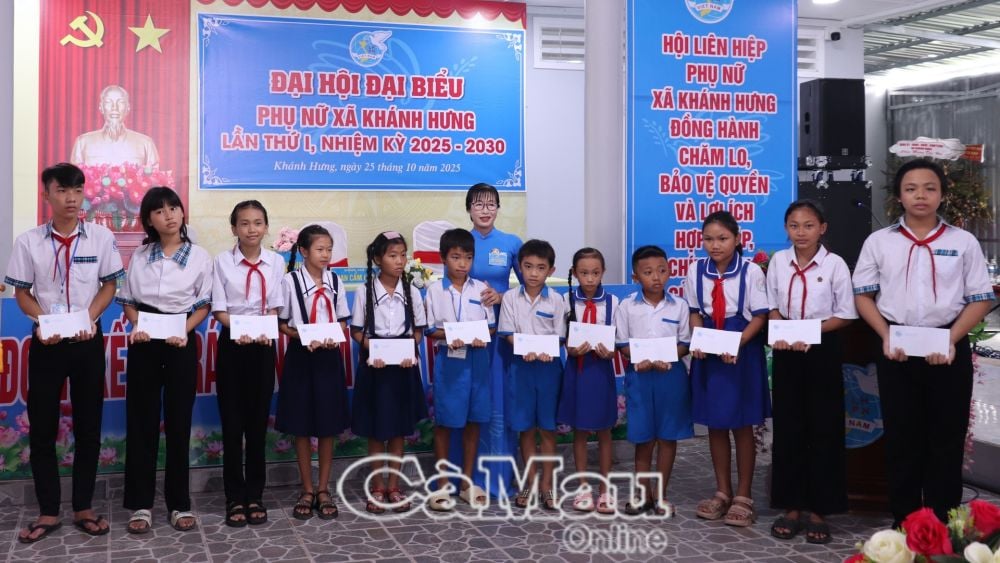 Η Tran Lan Anh (δεύτερη από δεξιά) έλαβε την υποτροφία της 20ής Οκτωβρίου που απονεμήθηκε από την Ένωση Γυναικών της κοινότητας Khanh Hung στο Συνέδριο Γυναικών της κοινότητας που πραγματοποιήθηκε στα τέλη Οκτωβρίου 2025.