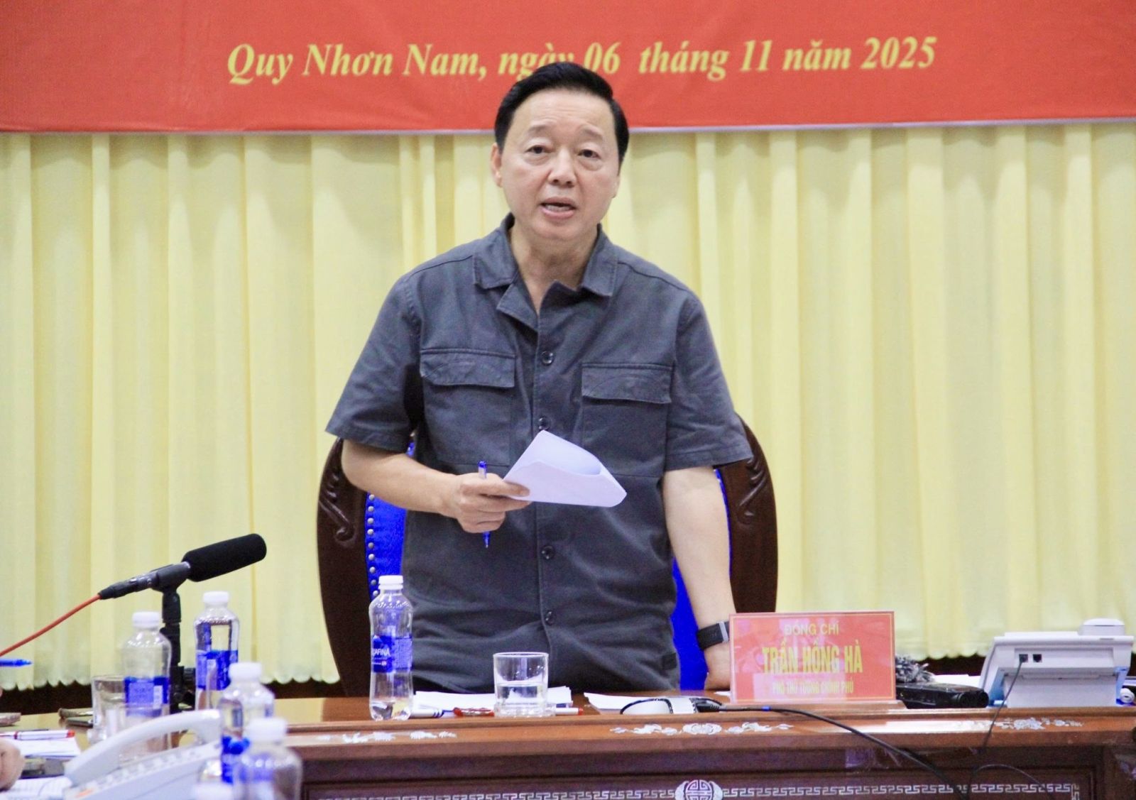 Ολοκληρώνοντας τη συνάντηση, ο Αντιπρόεδρος της Κυβέρνησης Τραν Χονγκ Χα τόνισε ότι η καταιγίδα αριθ. 13 έχει πολύ γρήγορες, πολύπλοκες και απρόβλεπτες εξελίξεις, επομένως οι τοπικές αρχές δεν πρέπει σε καμία περίπτωση να είναι υποκειμενικές, πρέπει να διατηρήσουν την προειδοποίηση κινδύνου καταστροφής επιπέδου 4 και να μην μειώσουν το επίπεδο αντίδρασης σε καμία περίπτωση.