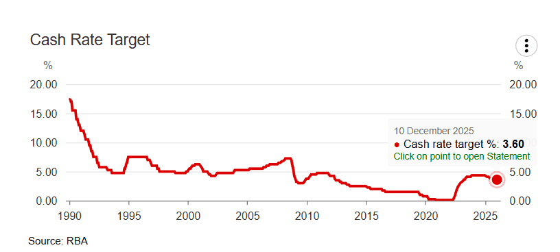 At its regular meeting in December 2025, the Reserve Bank of Australia (RBA) decided to keep its benchmark interest rate unchanged at 3.6%. This decision was made after the RBA's Governing Board assessed that inflation had shown signs of rising again in recent months.