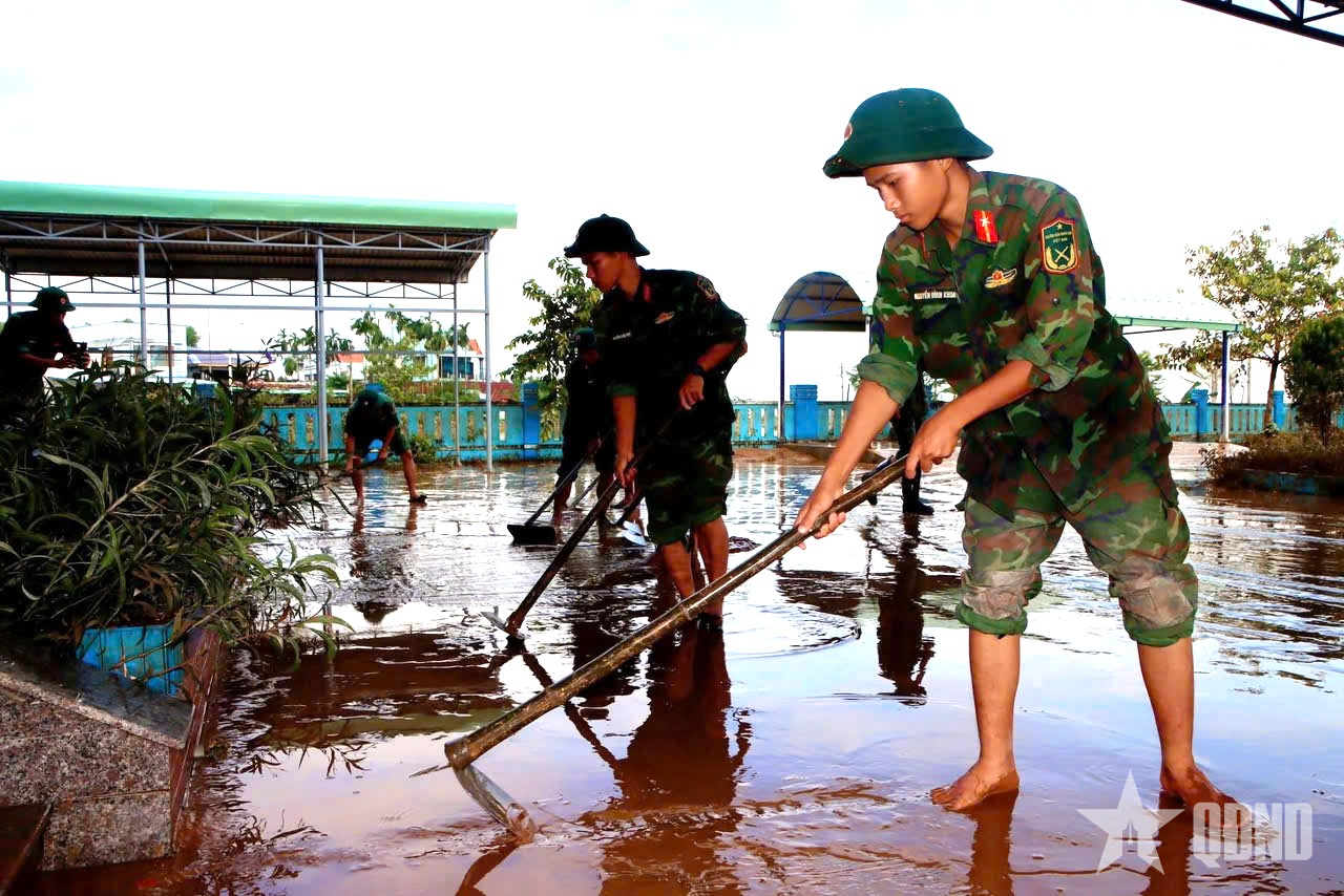 The timely presence of officers and soldiers of units in flood-affected areas demonstrates the spirit of initiative, responsibility and solidarity between the army and the people, joining hands with local Party committees, authorities and people to soon bring life back to normal.
