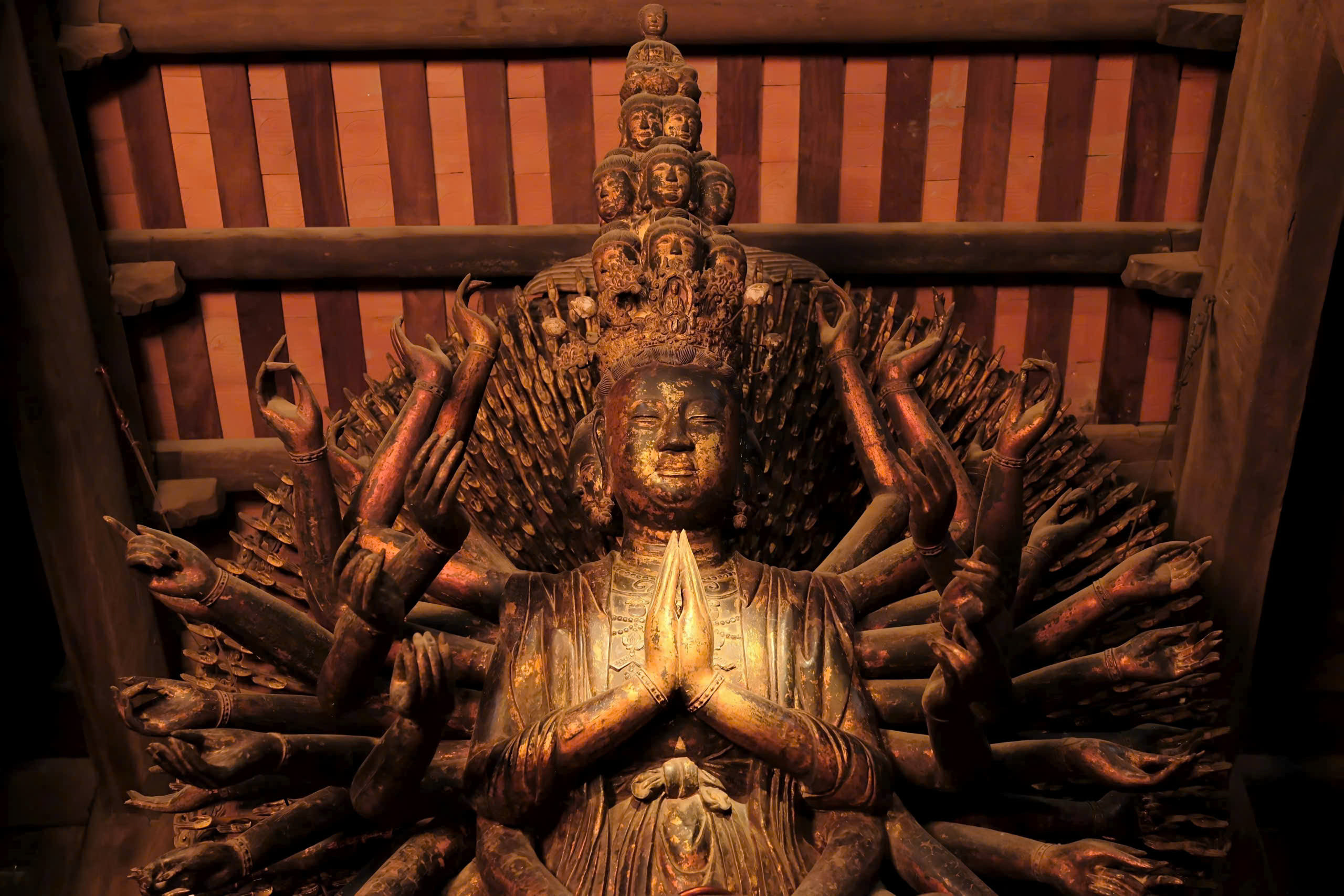 On each small hand there is an eye, making the Buddha seem to be watching and seeing through every corner of the universe, giving a feeling of both majesty and kindness.