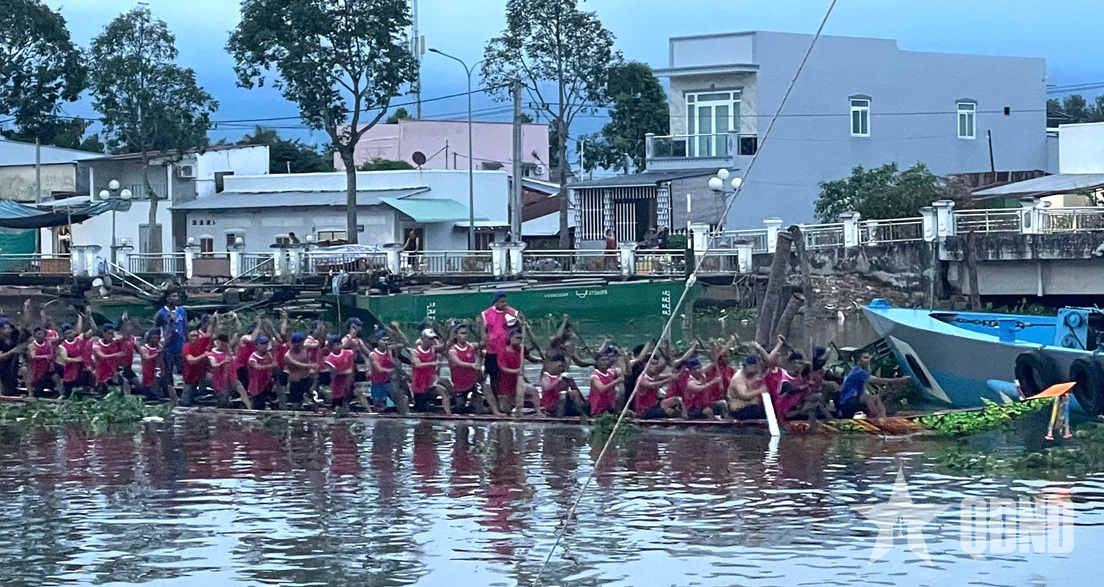 The Ngo boat team of Chroi Tum Chas pagoda (formerly Tra Tim pagoda), My Xuyen ward, Can Tho city is one of the teams that is diligently practicing for the upcoming tournament. At around 6 pm, the team gathers to take roll call of each member, then starts practicing. Under the coach's command, the members all try their best to row, the sound of water hitting each other. Each oar plunged down shows the determination and effort of each member of the team, they have to coordinate well and have the highest endurance as if they were on a real race track to take the boat as fast as possible without getting exhausted when nearing the finish line.