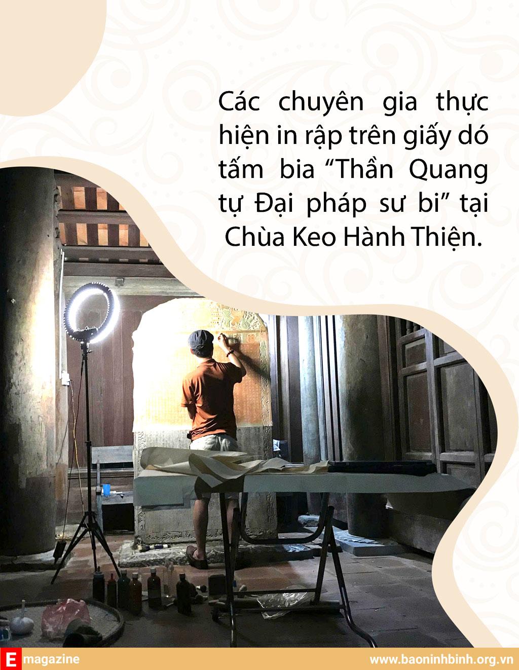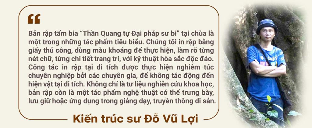 In the series of digitization activities, the printing method, an ancient oriental craft technique, has been applied to preserve the details, patterns, motifs and inscriptions on the reliefs, stone steles and wooden structures of the pagoda. Printing uses traditional Do paper combined with mineral oil to directly copy the surface of the artifacts, helping to accurately preserve traces that are difficult to fully represent with the naked eye or modern digital equipment.