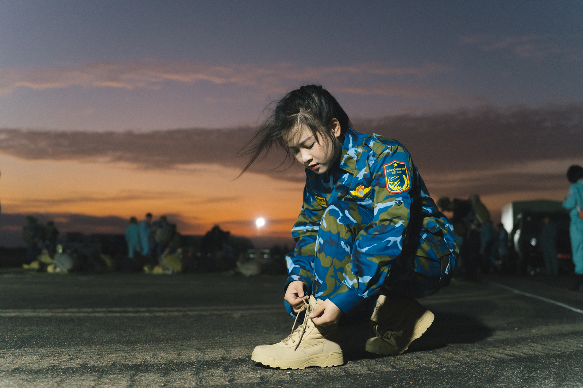 At exactly 6 o'clock, after putting on their parachute bags and checking to ensure the safety of their main and auxiliary parachutes, the pilots, Thu Hang and dozens of students were ordered to march from the assembly area to the runway to board the plane.