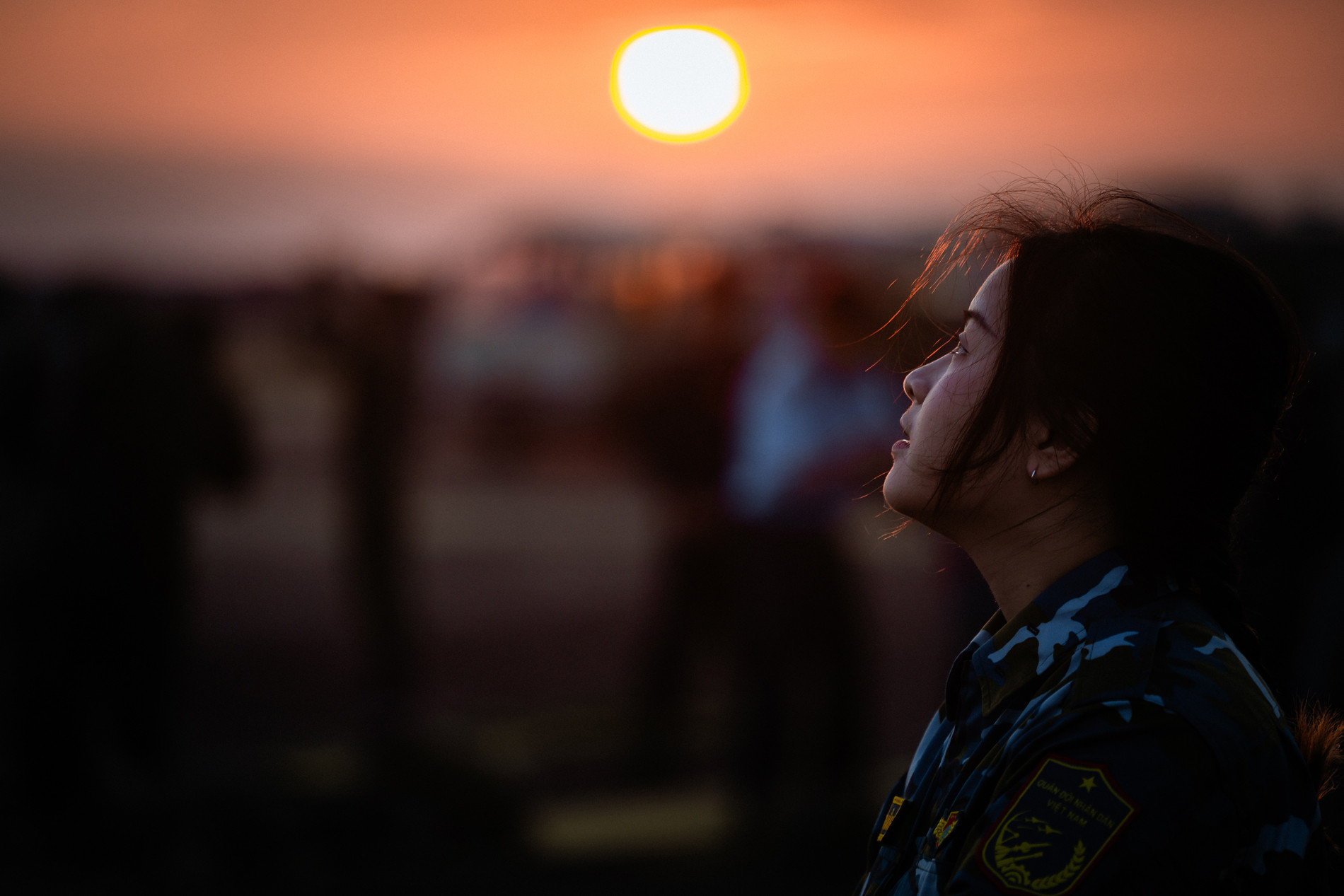 Early morning on March 26, exactly one day before her 25th birthday, at Tuy Hoa airport ( Phu Yen ), Thu Hang and about 50 people took the opportunity to practice more to prepare for the upcoming 3 "once in a lifetime" seconds.