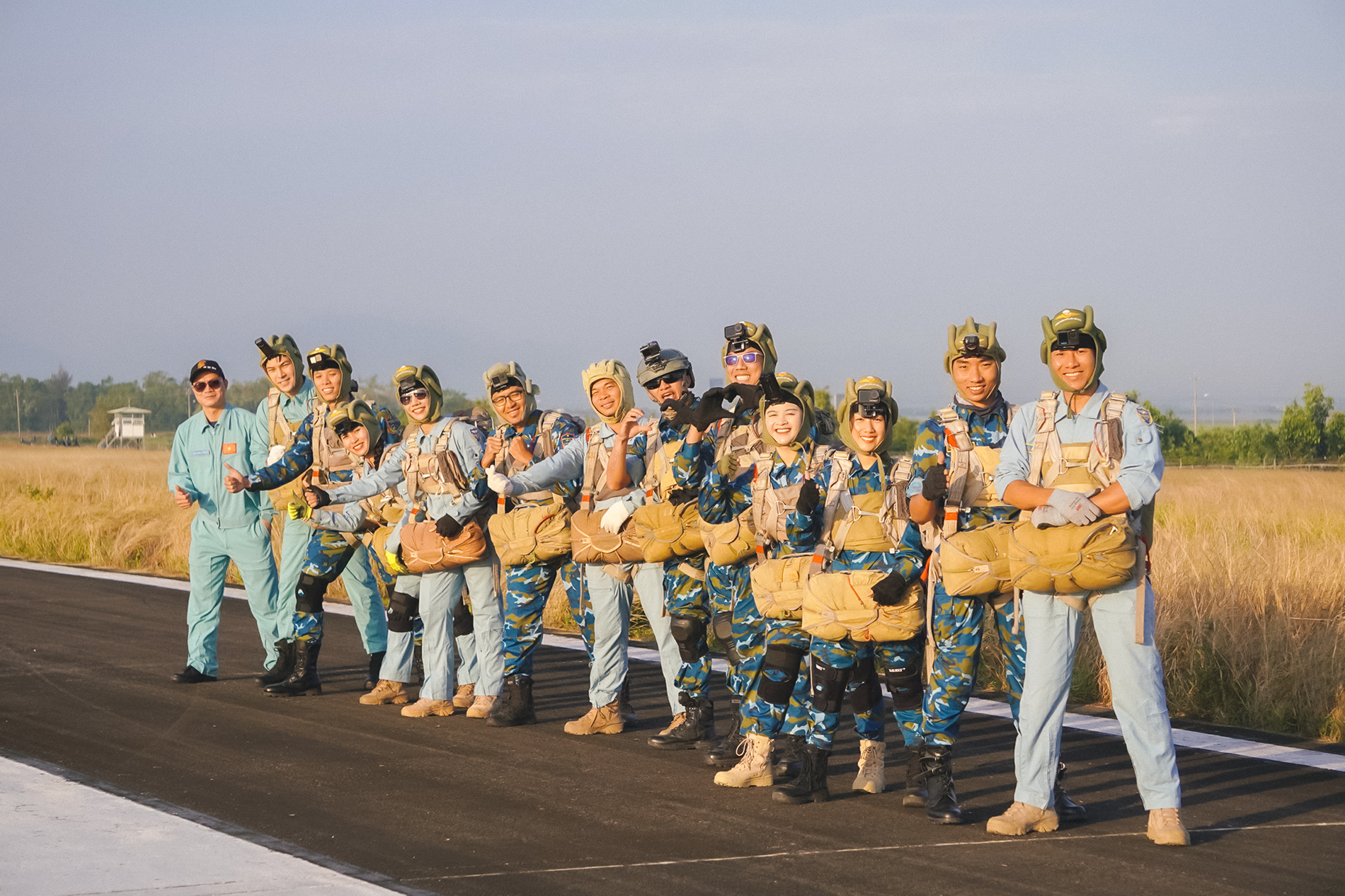 After that, the students stood in groups, waiting for their turn to put on their 12kg parachute backpacks, then went through the safety lock checks by professional staff and walked out onto the runway to board the plane,” Hang recounted.