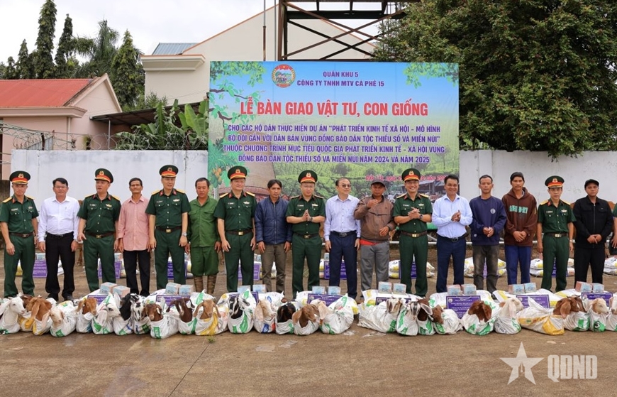 This is one of the components of the Project "Socio- economic development - Model of soldiers associated with ethnic minority and mountainous areas" under the "National target program on socio-economic development in ethnic minority and mountainous areas" by Coffee 15 One Member Co., Ltd. as the representative investor to implement in 2024 and 2025 in Dak Lak province. At the program, Coffee 15 One Member Co., Ltd. handed over materials and breeding animals to 259 households, including 250 households given 250 breeding cows and 9 households given 36 breeding goats, with a total cost of nearly 7 billion VND; of which the state budget accounts for 81.7%, the counterpart capital of Coffee 15 One Member Co., Ltd. and households accounts for 18.3%.