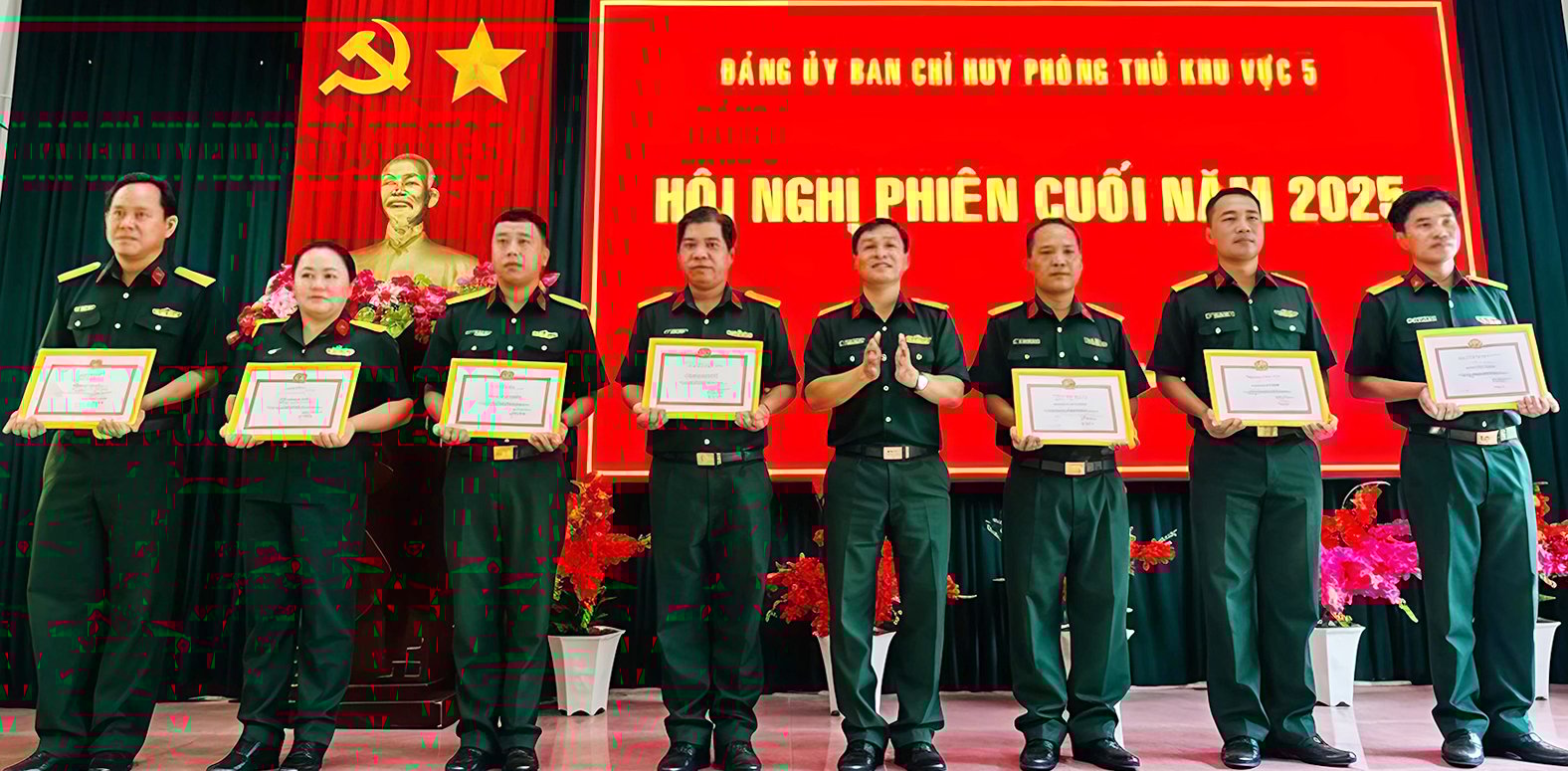 On this occasion, the Party Committee of the Defense Command of Region 5 - An Bien awarded certificates of merit to 1 collective and 16 individuals with outstanding achievements in performing tasks in 2025.