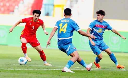 Starting from a free kick on the left wing, the red-shirted players created dangerous situations for the Philippines' goal. However, the Vietnam U22 team was unable to produce a single dangerous shot. - 13'