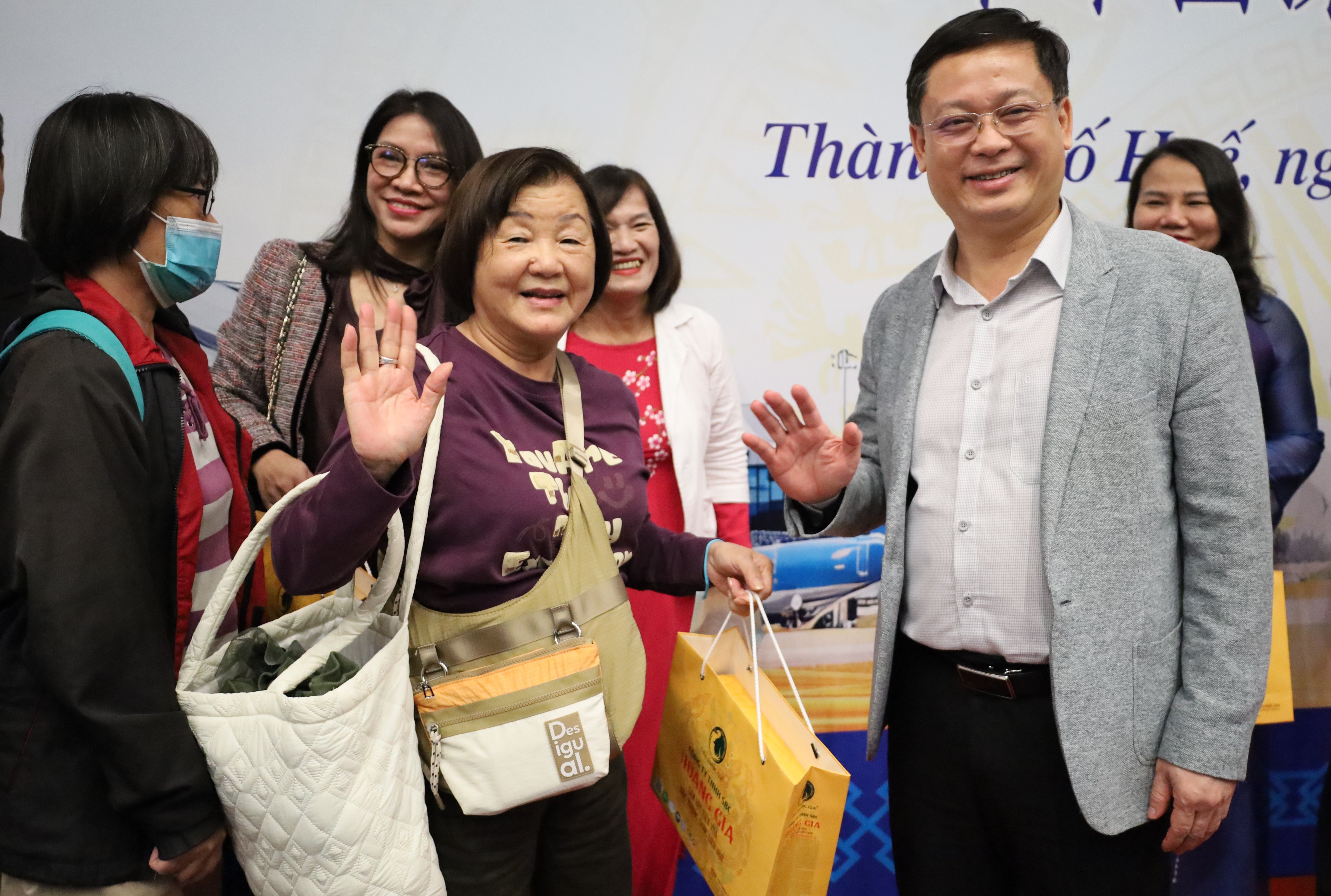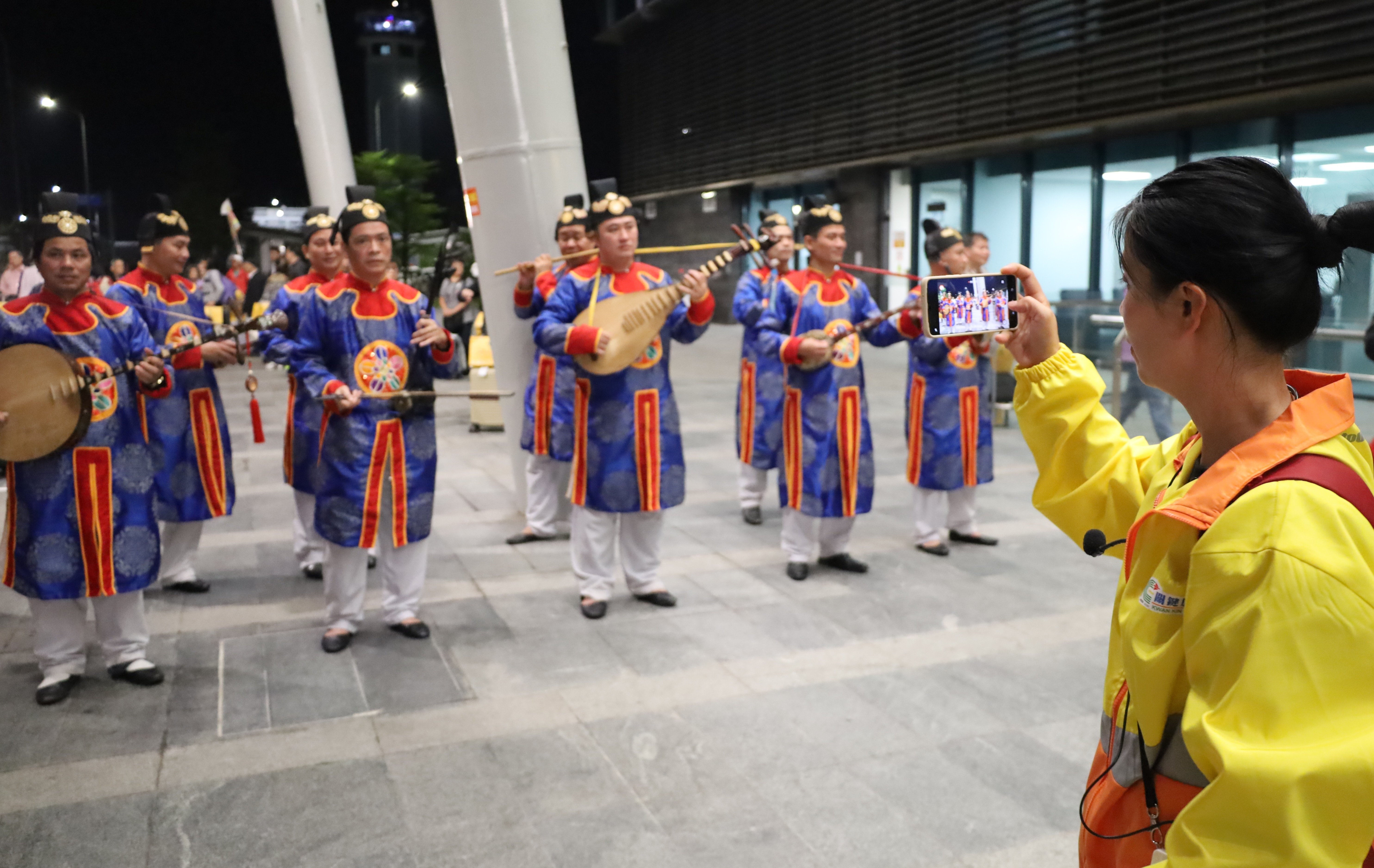 All passengers on the flight were welcomed by leaders of the City People's Committee, Department of Tourism , Department of Foreign Affairs, City Police, Center for Conservation of Ancient Capital Monuments, Tourism Association, Phu Bai International Airport, Central Port Authority at Phu Bai International Airport and related units, presented with flowers and souvenirs, along with a performance of royal court music and lion and dragon dances.