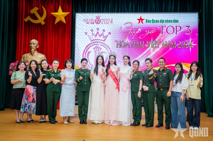 The top 3 Miss Vietnam 2024 contestants received much admiration from the staff and reporters of the People's Army Newspaper.