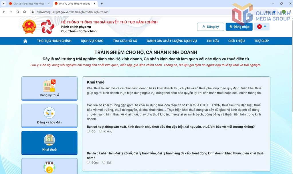 - Excuse me, sir Explain the benefits of household businesses paying taxes using the declaration method and How has Quang Ninh Tax Department implemented the roadmap for this task?