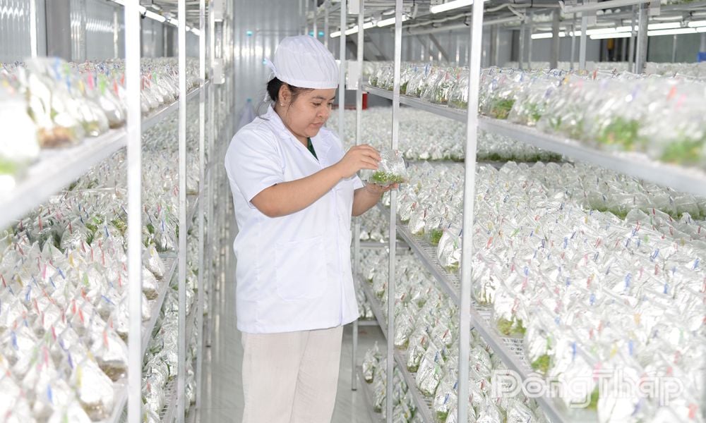 According to Ms. Bui Thi Kim Thanh, Chairwoman and Director of Kim Phat High-Tech Agricultural Cooperative, tissue culture at the cooperative applies cell technology to propagate new plants in an artificial environment, enabling rapid and mass production of plant varieties while completely preserving the characteristics of the original plant. At the same time, it overcomes the disadvantages of other asexual propagation methods such as layering, grafting, or cuttings.