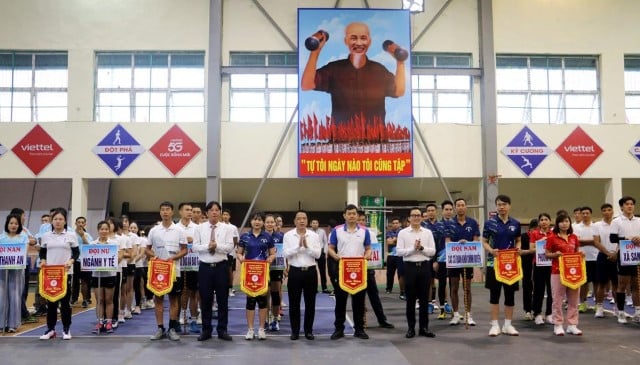 Participating in the tournament were 9 teams from the following units: Education and Training sector, Health sector, government agencies, Muong Thanh ward, Tan Thanh ward, Him Lam ward, Sam Mun commune, Thanh An commune,... with nearly 100 officers, coaches and athletes participating.