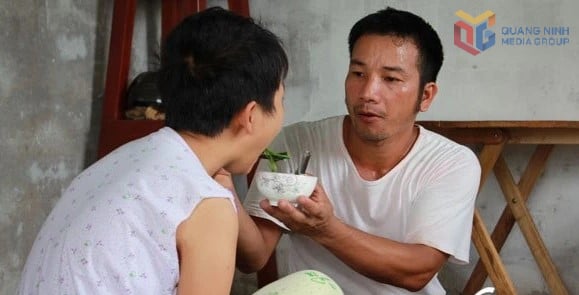 Luckily, Ms. Van has a very loving husband who has taken care of everything for her. From bathing, personal hygiene, to doing laundry, taking care of the children... he does everything without hesitation. Mr. Seo is not only a spiritual support, but also a "pair of hands" to help Ms. Van overcome the great disaster.